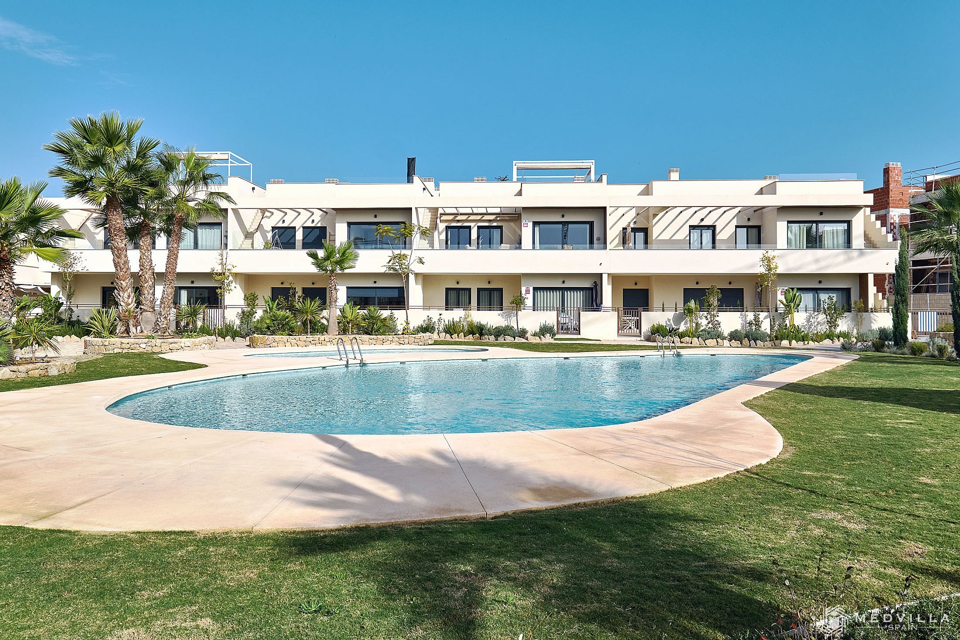 Villa Amalia Mediterranean Gardens - SLEUTELKLAAR Appartement met tuin voorzien van 2 Slaapkamers en 2 Badkamers, gemeenschappelijk zwembad en ondergrondse parkeerplaats, gelegen te Torrevieja aan de Costa Blanca Zuid in Spanje.