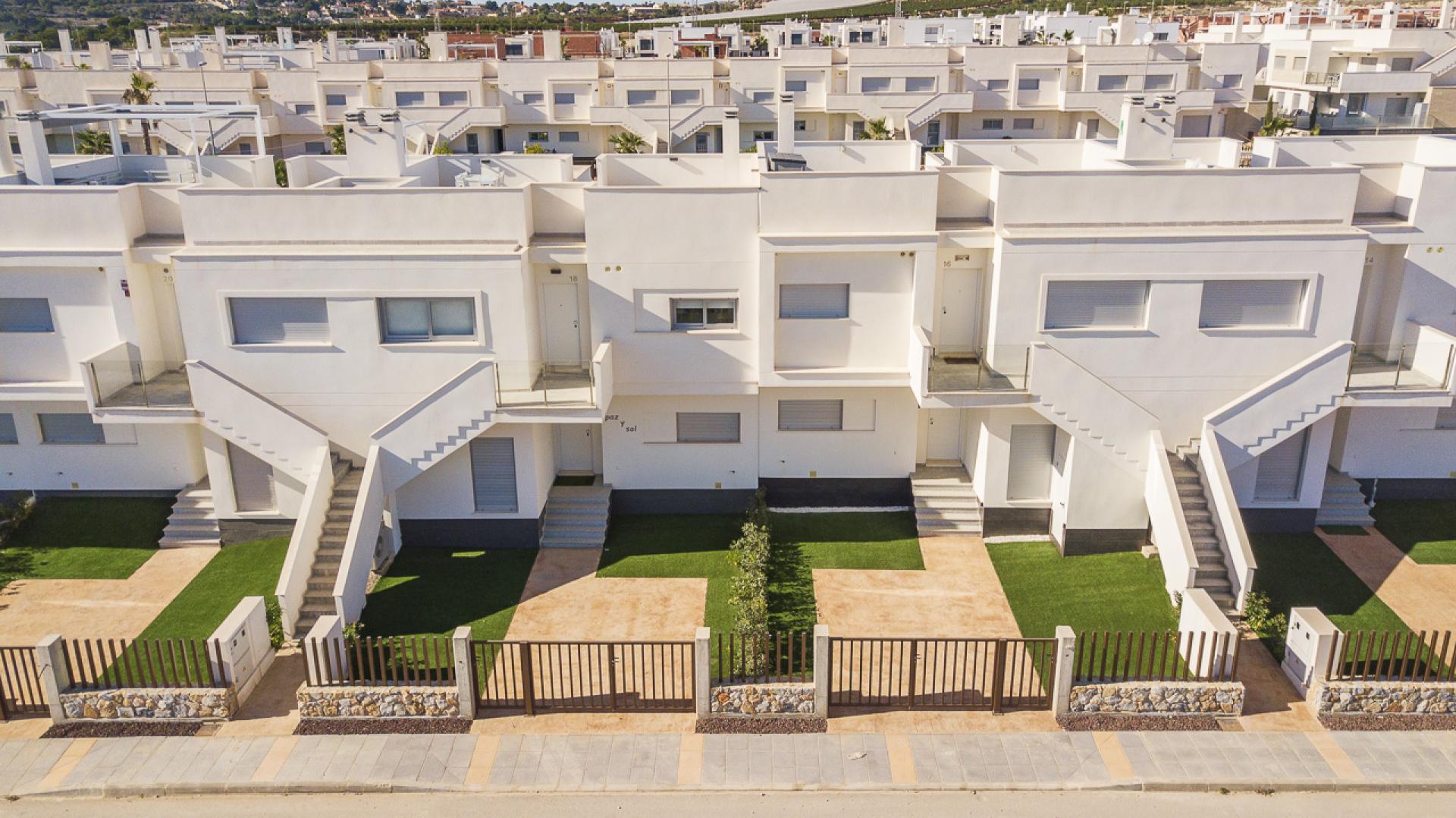 Er zijn 2 types beschikbaar; gelijkvloers gelegen appartementen met tuin en duplex appartementen met ruim privé zonneterras. Iedere fase in dit project heeft zijn eigen zwembad met jacuzzi en een kinderbadje met diverse groene stroken voorzien van diverse palmbomen.