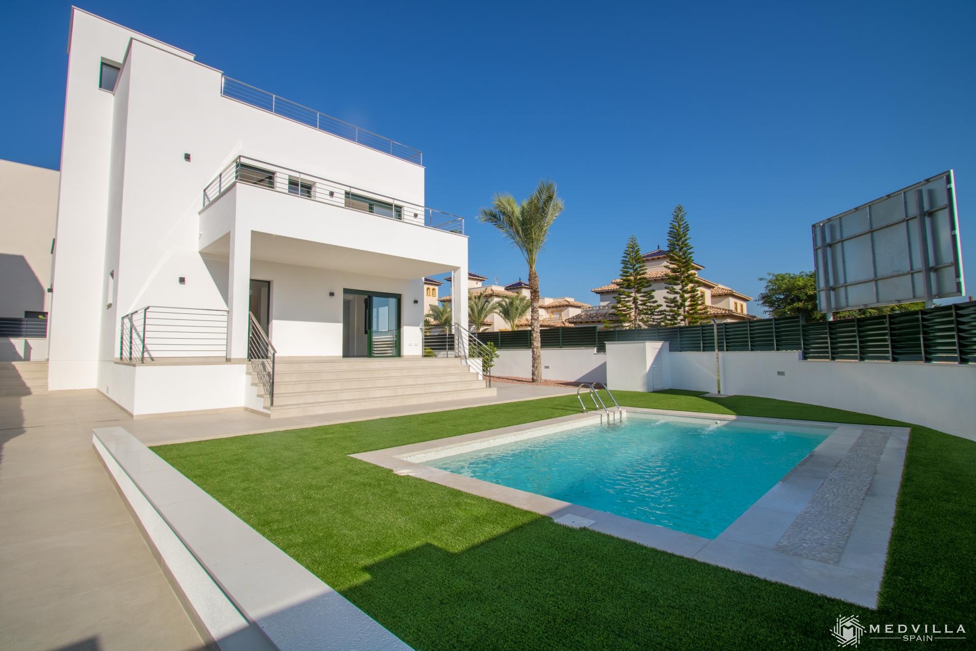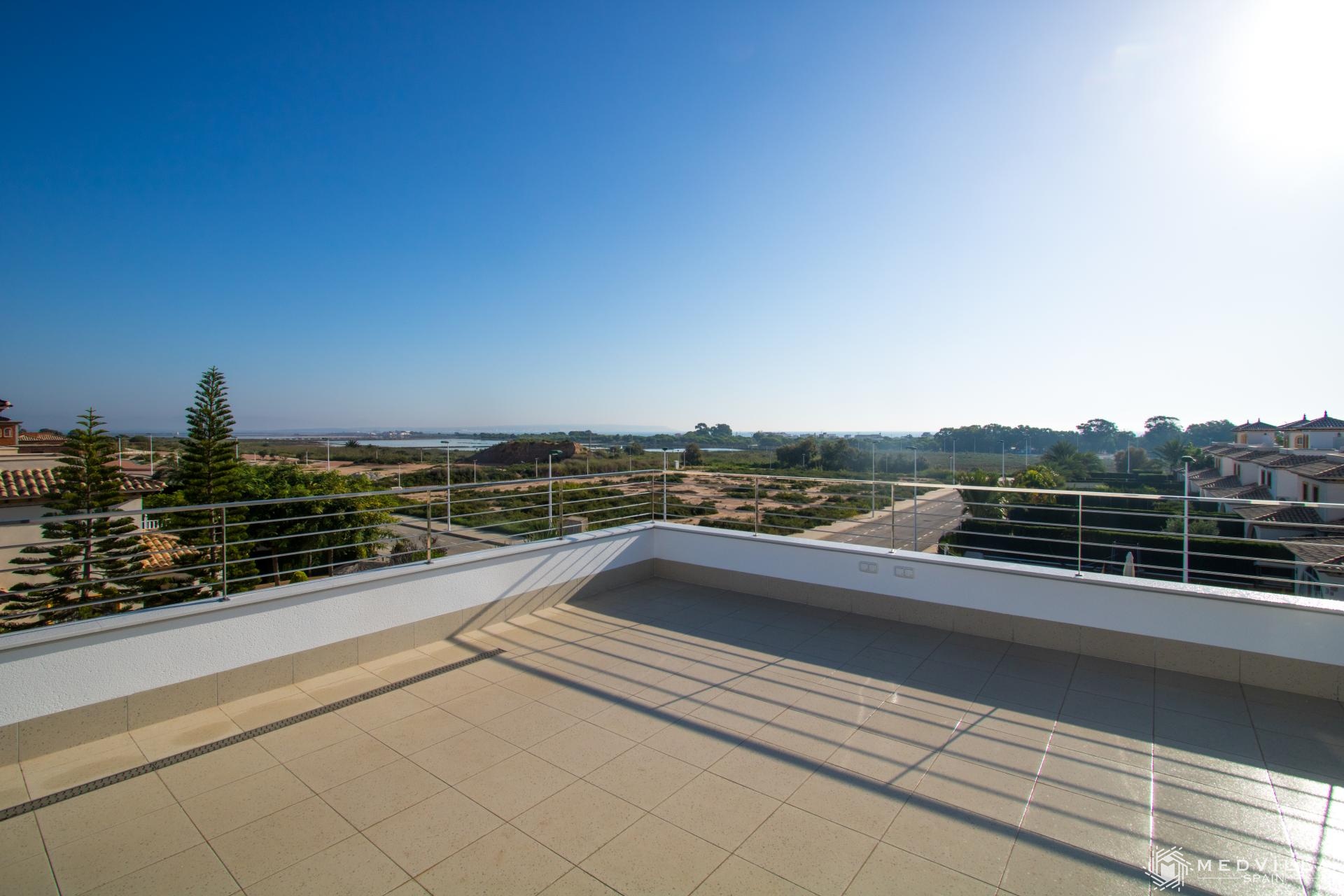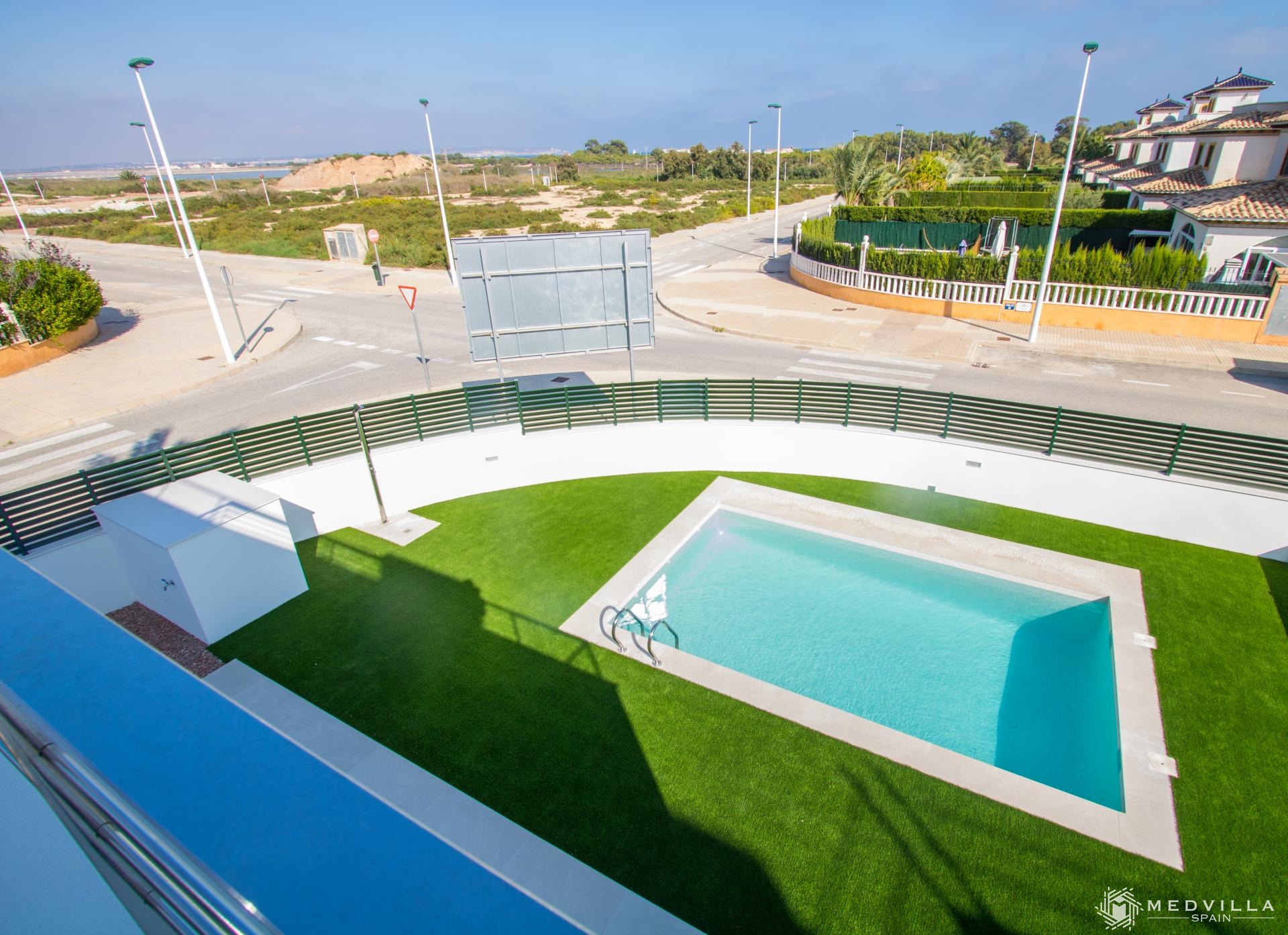 Nieuw particulier wooncomplex bestaande uit 12 villa's in La Marina, Alicante (El Pinet) met vrijstaande villa´s in een.zeer mooie woonwijk omgeven door de natuur, dicht bij alle lokale voorzieningen en op slechts 800 meter van het strand Playa del Pinet. Gelegen tussen Elche en Santa Pola, en 20 minuten van de luchthaven van Alicante.