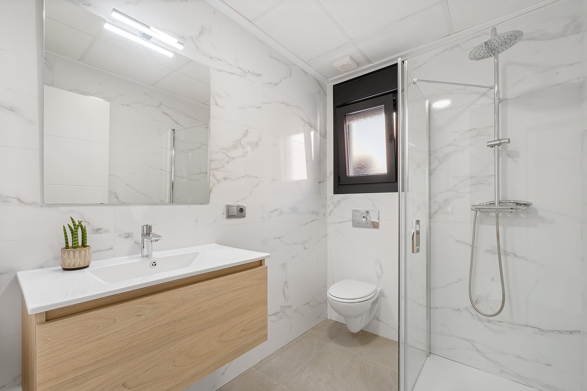 Op de eerste verdieping bevinden zich nog twee slaapkamers, allebei met ingebouwde kasten en toegang tot een groot terras waar je ’s ochtends de zon ziet opkomen of ’s avonds heerlijk kunt nagenieten. De villa’s worden gebouwd op percelen vanaf circa 158 m² tot 252 m², met een bewoonbare oppervlakte van ongeveer 97 m². Dat geeft je zowel binnen als buiten de ruimte die je zoekt voor jezelf en je familie.