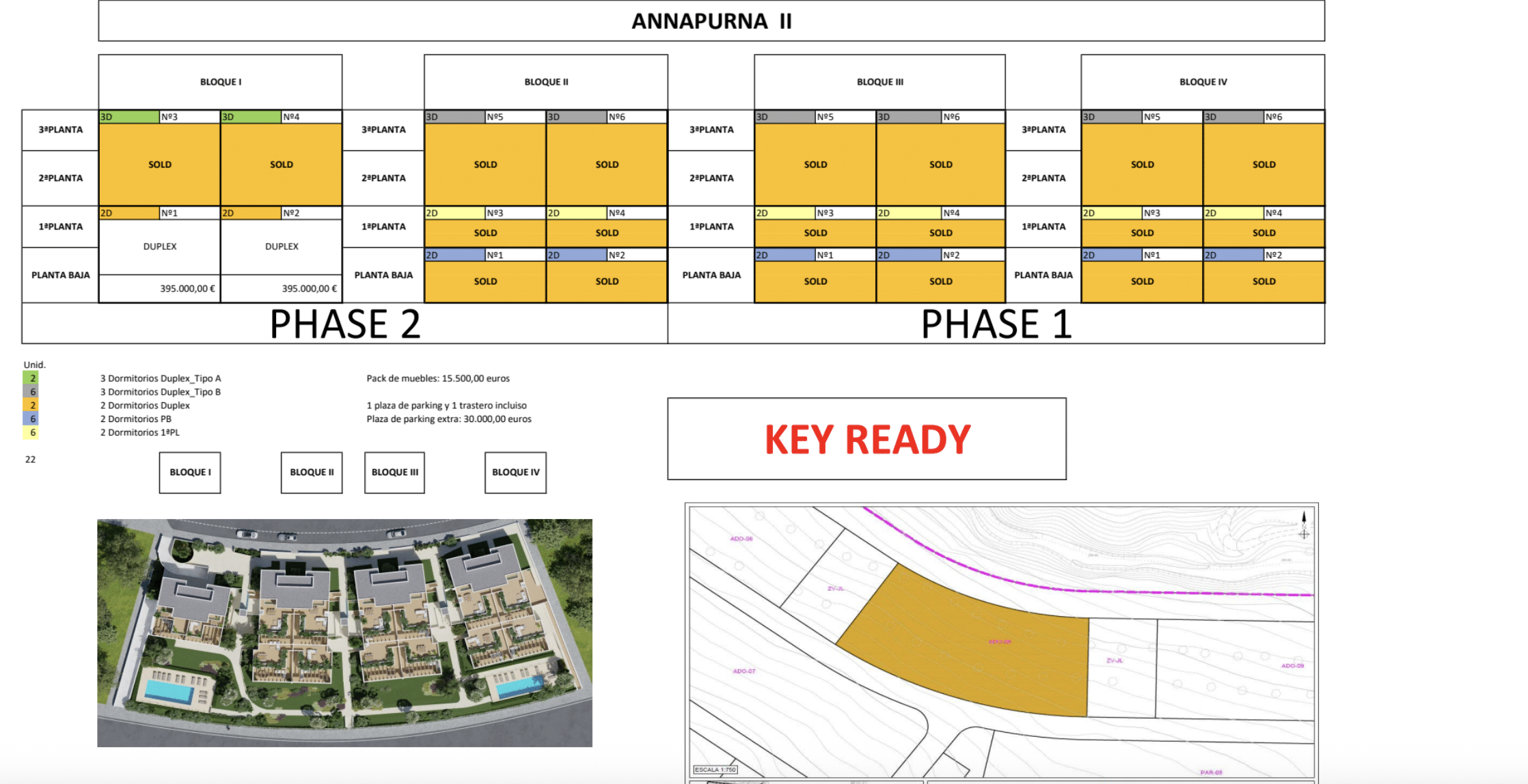 Deze Annapurna appartementen met 2 slaapkamers of duplex appartementen met 2 of 3 slaapkamers en 2 badkamers bestaan uit vier gebouwen, ondergrondse parkeerplaatsen met berging en een gemeenschappelijk zwembad, grote groene gemeenschappelijke ruimtes.