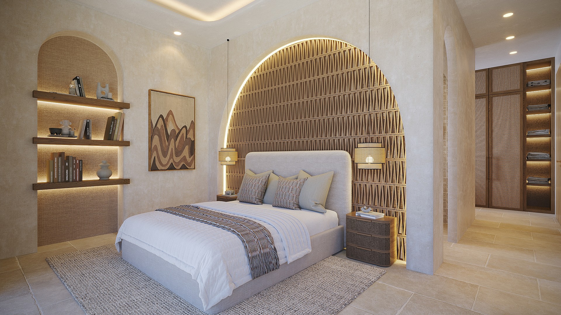 Casa Hemingway valt op door haar ronde hoeken en olijfgroene, verouderde gevel, wat de villa een uniek karakter geeft. Het interieur is verfijnd, met microcement in de badkamers en op de vloeren.