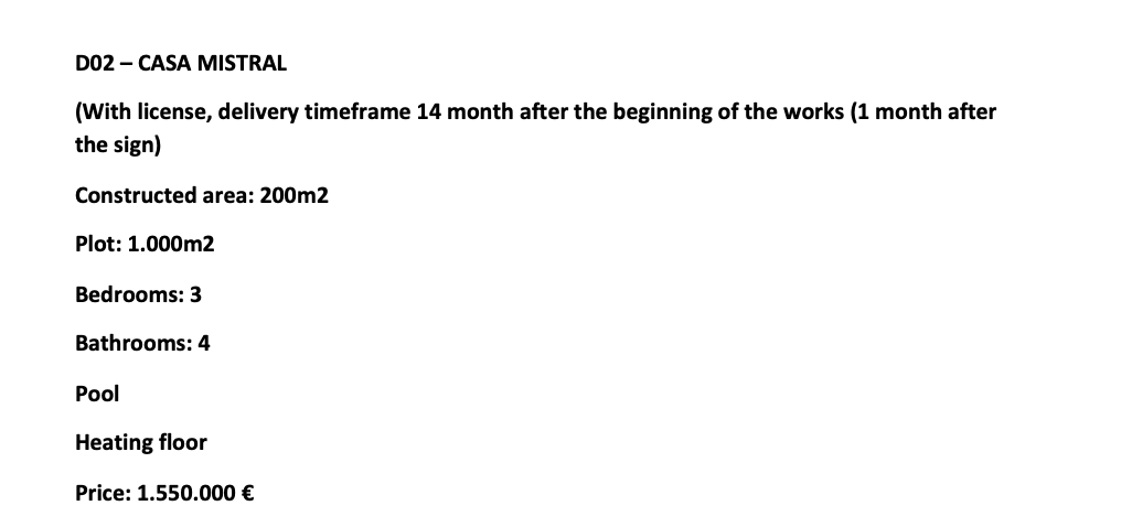 | Villa | 3 | 4 | 200 m² | 1000 m² | 1,550,000€ | Meer info... |