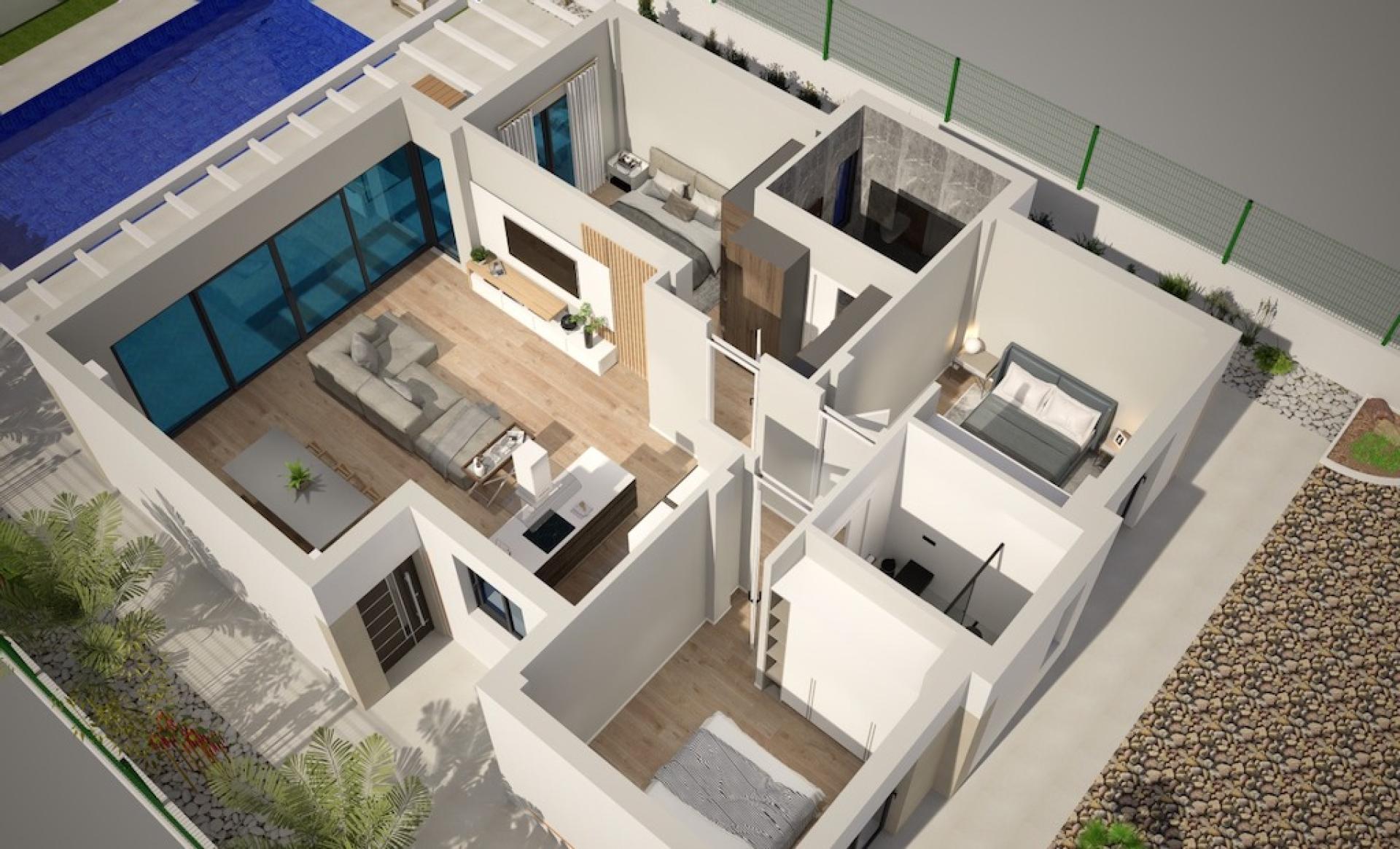 Kies uit een selectie van ruime percelen van 400 m2, elk met een eigentijdse villa van 100 m2, voorzien van 3 slaapkamers en 2 badkamers. Deze promotor biedt de mogelijkheid om uw woning volledig te personaliseren met een scala aan upgrades, waaronder een privé zwembad, poolbar, solarium, automatische poort en een prachtig aangelegde tuin. De inbouwkasten en vloerverwarming in de badkamers zijn reeds inbegrepen in de prijs.