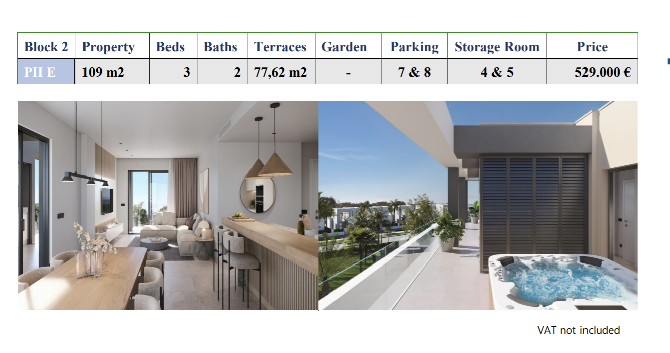 | Type | Slaapkamers | Badkamers | Opp. woning | Opp. terras | Opp. solarium | Prijs vanaf | |