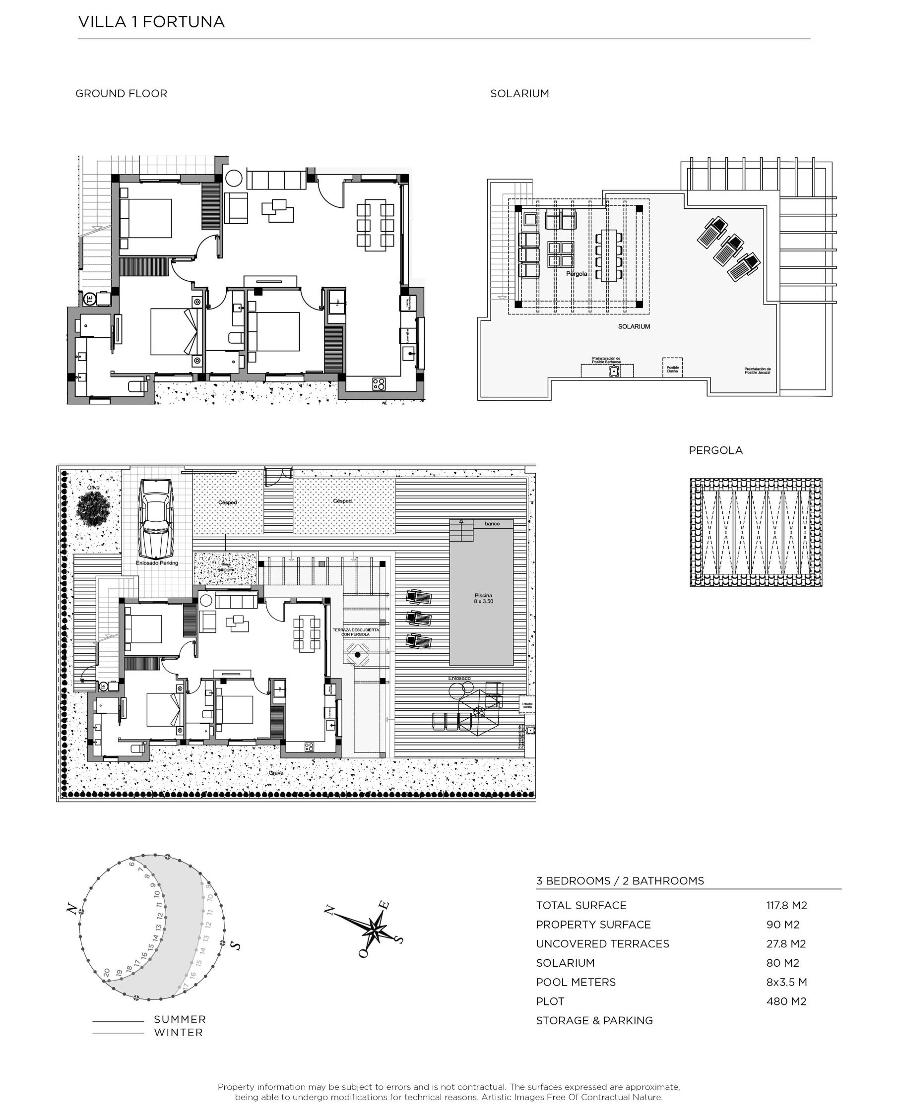 Nieuwe villa's Fortuna, met een groot perceel en een privétuin met een zwembad en parkeerplaats. Deze villa's zijn ideaal als u op zoek bent naar comfort en levenskwaliteit, aangezien alle kamers zich op één verdieping bevinden. 3 slaapkamers, 2 badkamers, woon-eetkamer met open keuken, en in de buitenruimte kunt u, afgezien van de tuin, genieten van een ruim privésolarium met een pergola die zorgt voor een warm mediterraan tintje.