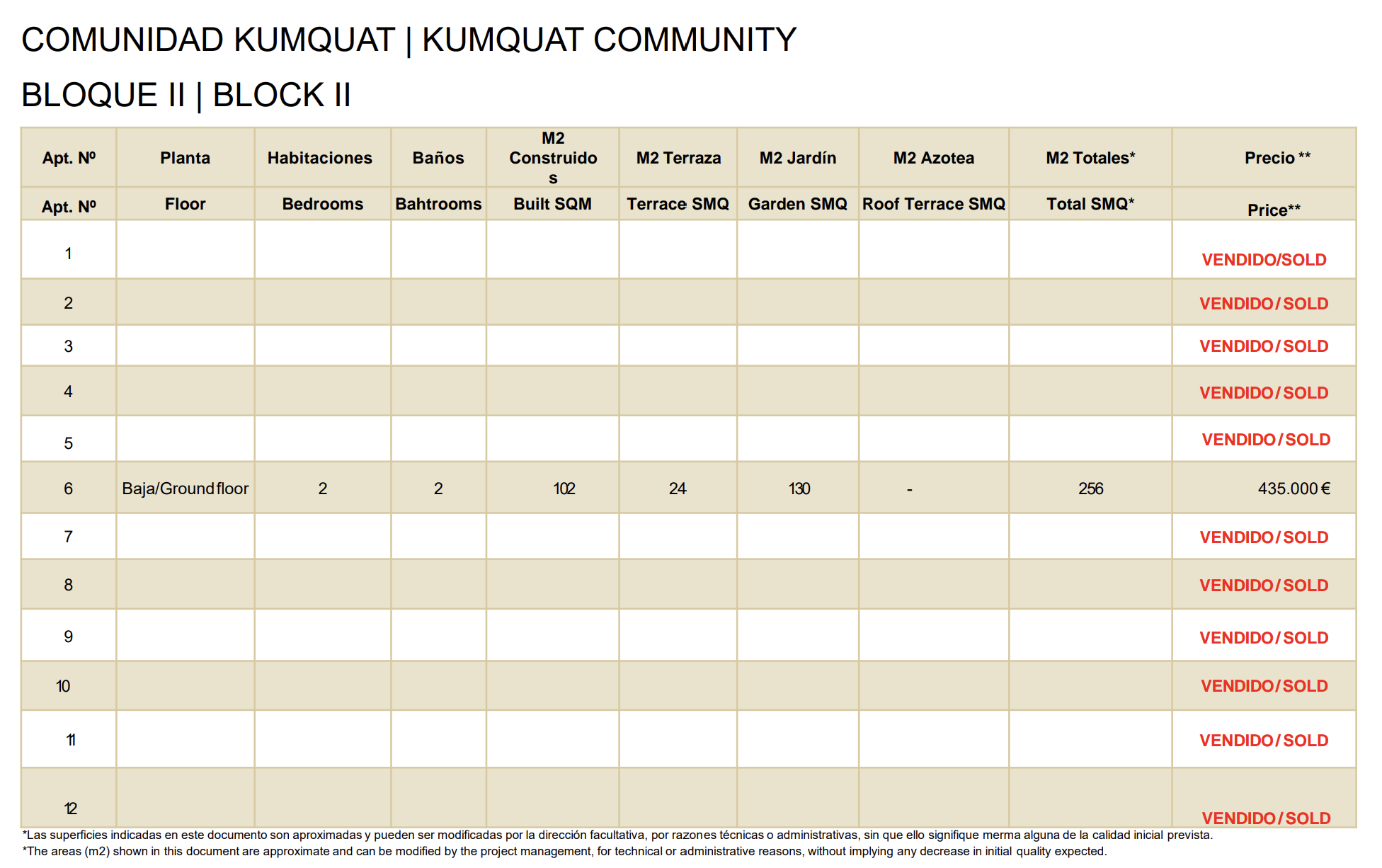 Kumquat omvat 24 appartementen, 12 appartementen in elk gebouw, en zijn zuid-& zuidwesten gelegen. Er is een ondergrondse autostaanplaats en een berging voorzien bij elke woning.