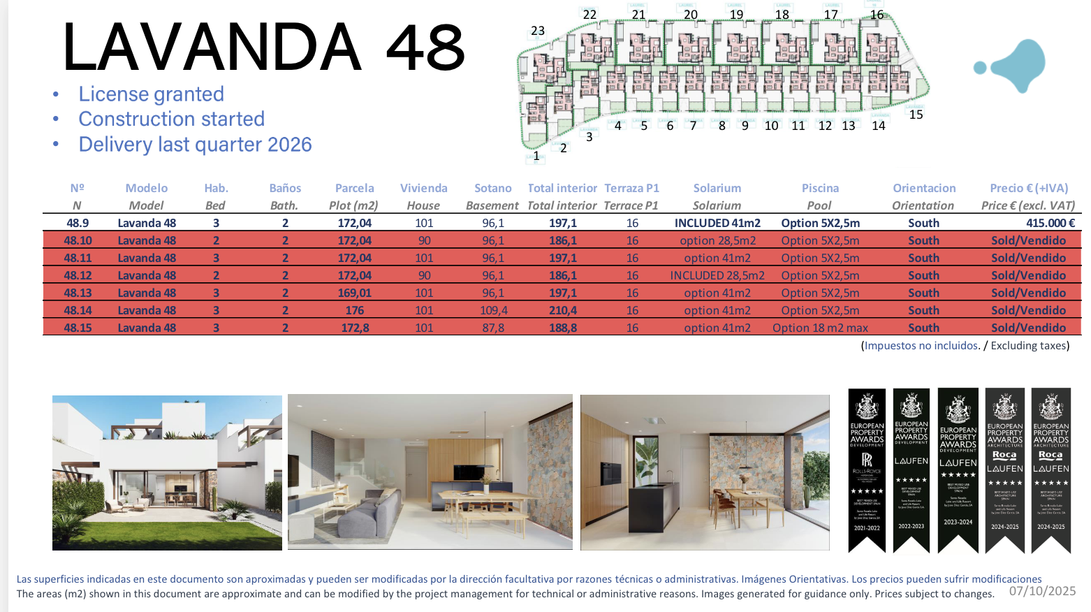 De nieuwste release, Lavanda 48, biedt villa's met 2 of 3 slaapkamers, ontworpen voor optimaal comfort en stijl. De open woon- en keukenruimtes verbinden de interieurs met ruime terrasvormige tuinen, ideaal voor ontspannen en buiten leven. Opties voor privézwembaden en royale kelders zorgen voor nog meer luxe, terwijl de dakterrassen een prachtig uitzicht bieden over het meer en de groene omgeving.