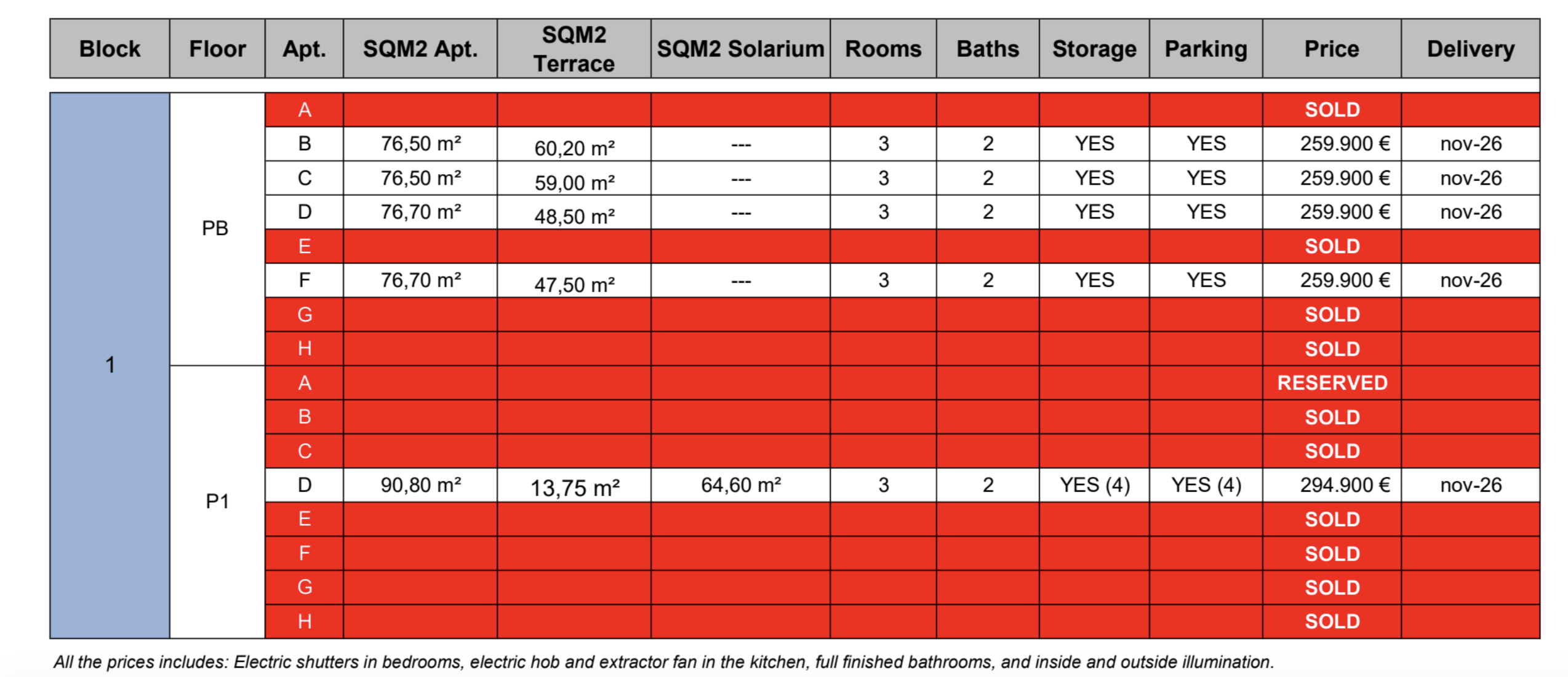 | Type | Slaapkamers | Badkamers | Opp. woning | Opp. terras | Opp. solarium | Opp. tuin | Prijs vanaf | |