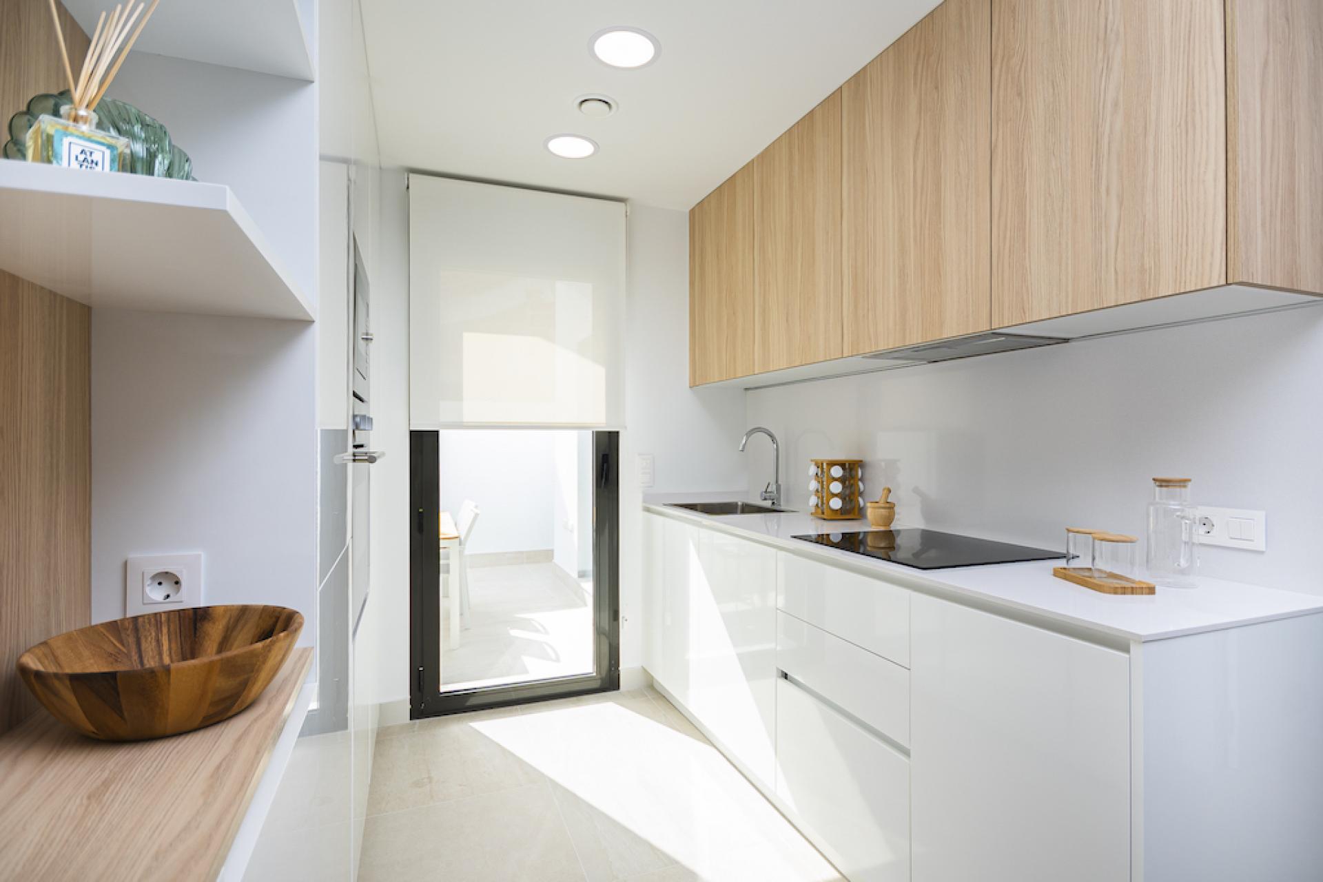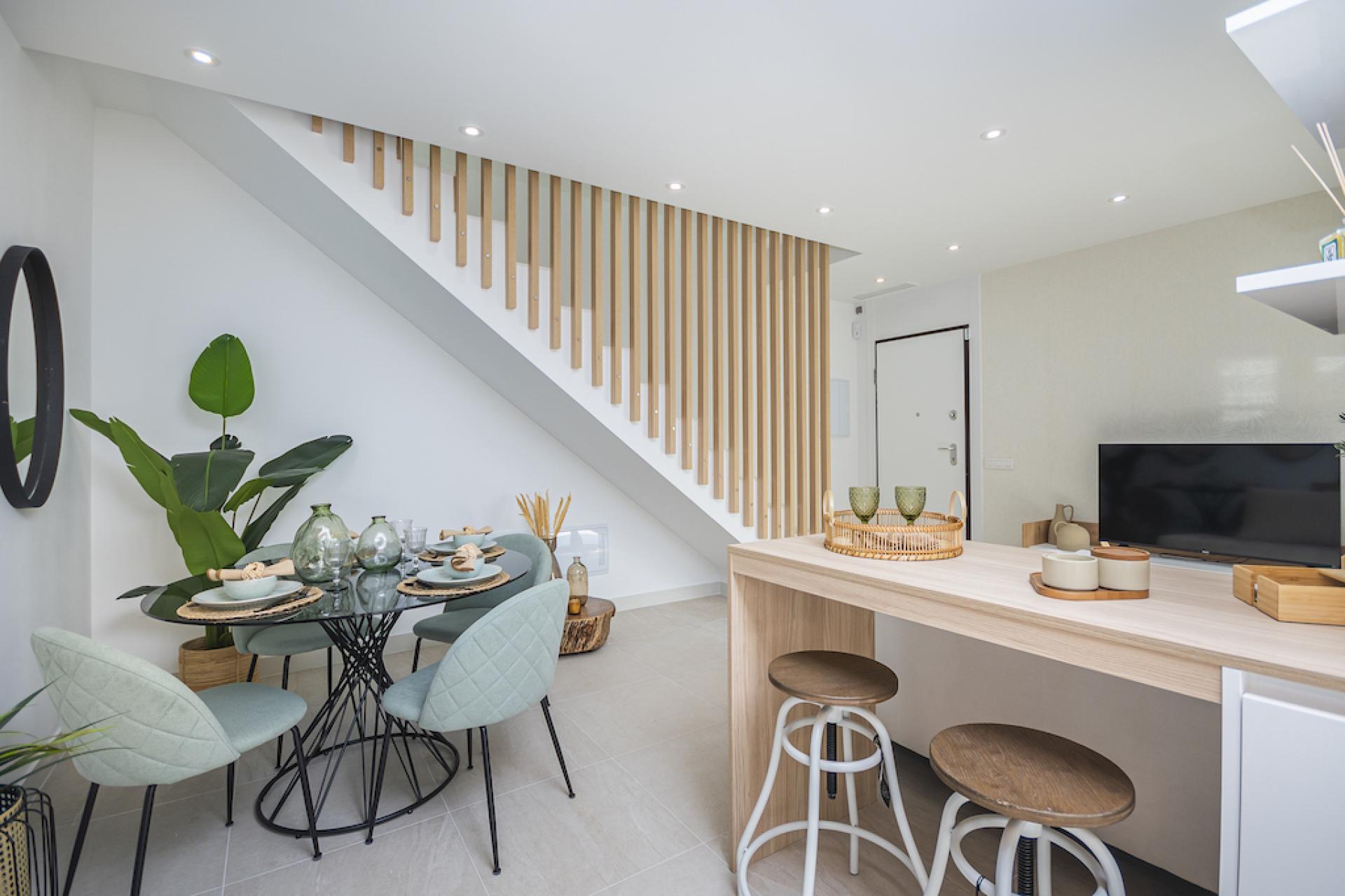 Als u uiteindelijk voor een maisonnette kiest, moet u kiezen tussen uitzicht op de Laguna Salada of op het zwembad, en ook tussen de bovenste of de onderste verdieping. Hoe dan ook, u krijgt een fantastisch huis vol natuurlijk licht, met een ruime woonkamer verbonden met de keuken.