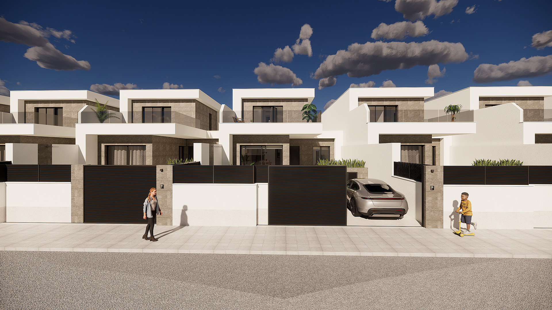 De villa’s zijn voorzien van elektrische rolluiken, uitgeruste badkamers en een keuken met apparatuur. Verder zijn de woningen voorbereid op airconditioning en beschikken ze over een gemotoriseerde toegangspoort naar de parkeerplaats.