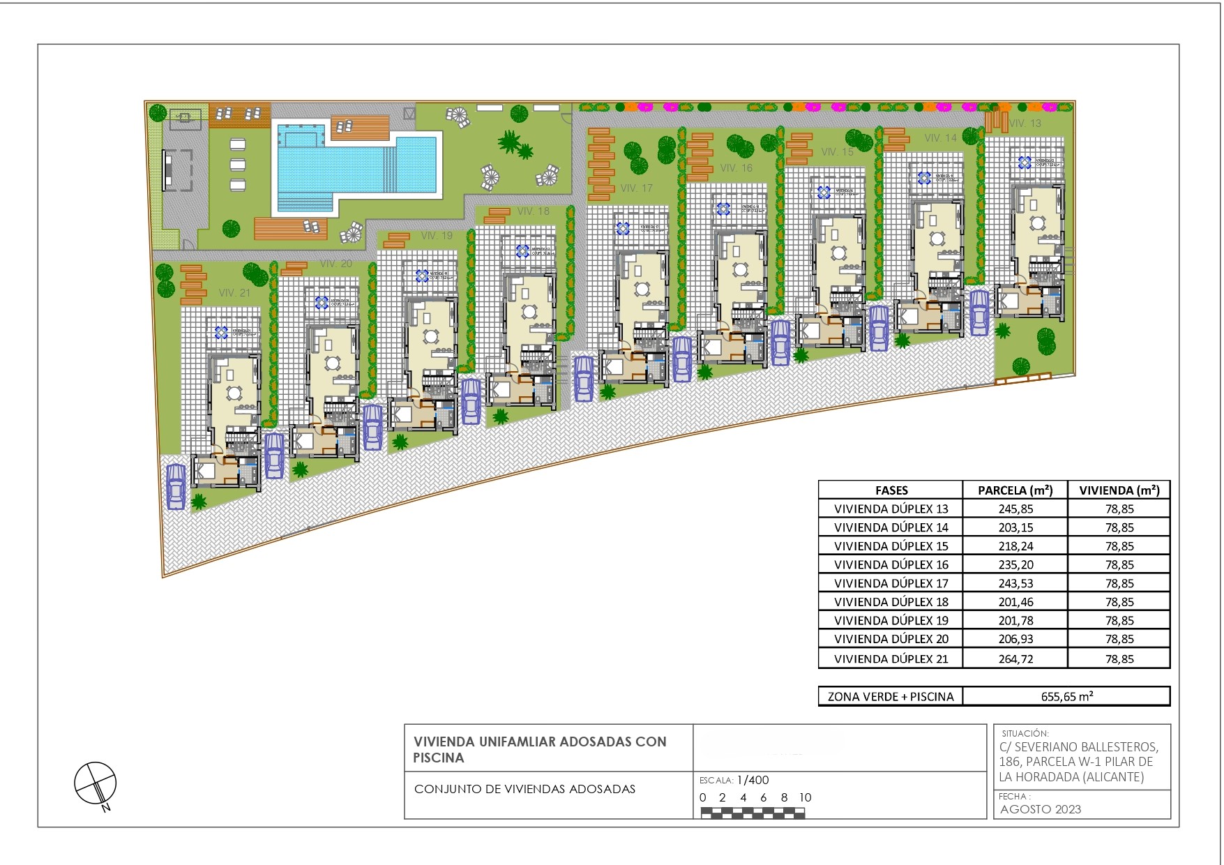 - De negen geschakelde villa's krijgen 3 slaapkamers en 3 badkamers, een eigen tuin, zonneterras en eigen parkeerplaats, evenals een gemeenschappelijke ruimte voor de villa-eigenaren met een gedeeld zwembad, jacuzzi, barbecue en fitnessruimte.