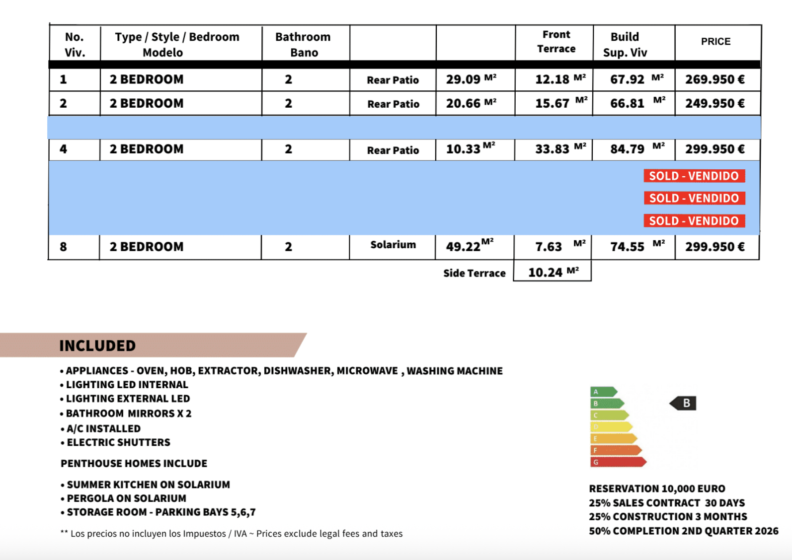 | Type | Slaapkamers | Badkamers | Opp. woning | Opp. terras | Opp. solarium | Prijs vanaf | |