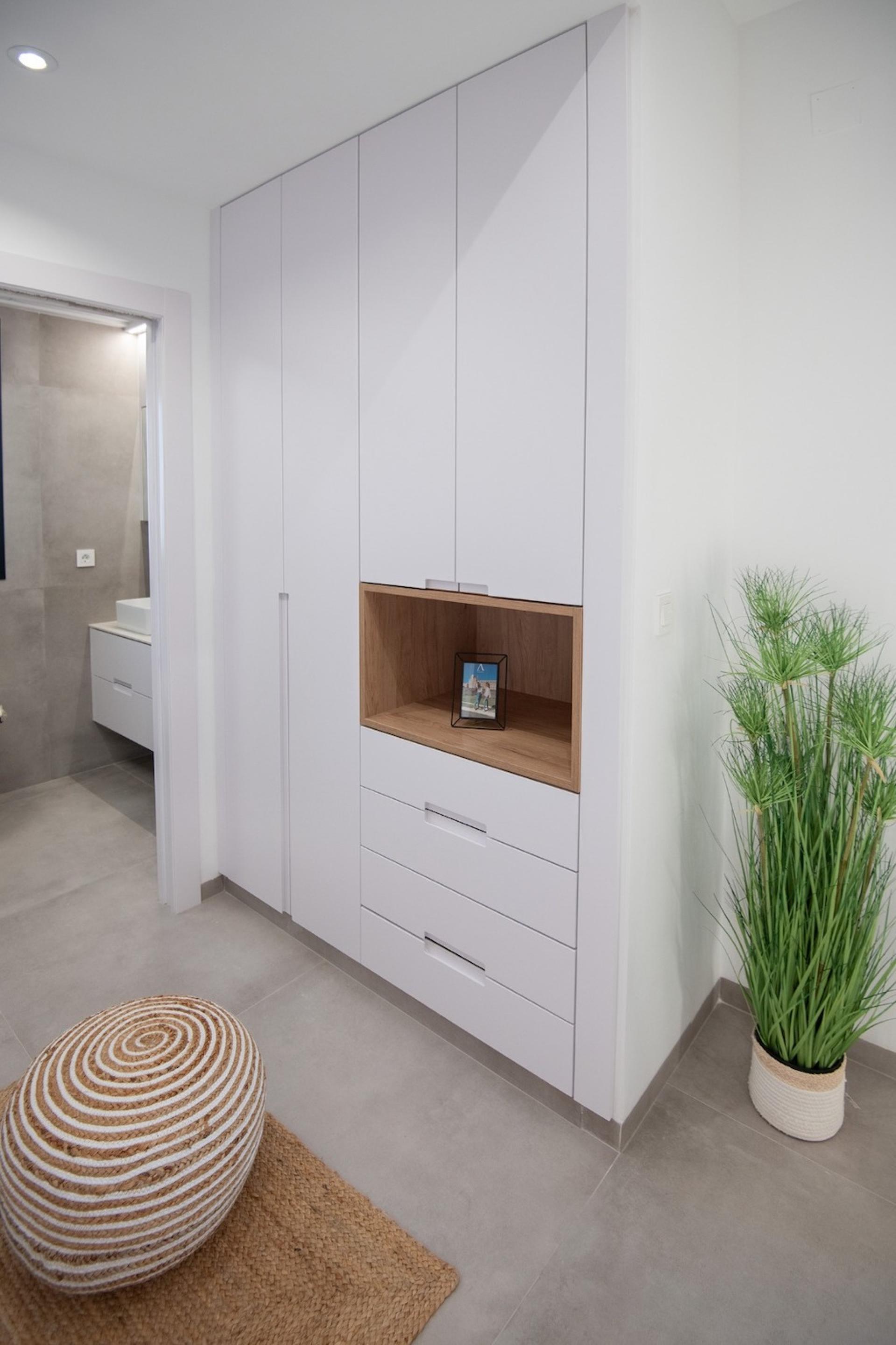 Deze prachtige vrijstaande villa's met 3 slaapkamers en 3 badkamers liggen op slechts 750 m van het strand in Santiago de la Ribera. Ze worden gebouwd op percelen van min. 200 m2 met een aangelegde tuin, privé zwembad, buitenkeuken en een garage voor uw auto. Vanop het terras en solarium kunt u de hele dag genieten van de Spaanse zon. Verder beschikken de villa's ook over inbouwkasten, volledig afgewerkte badkamers met vloerverwarming, verlichting binnen en buiten, alle keukentoestellen, ingebouwde sound speakers buiten en de volledige airco installatie.