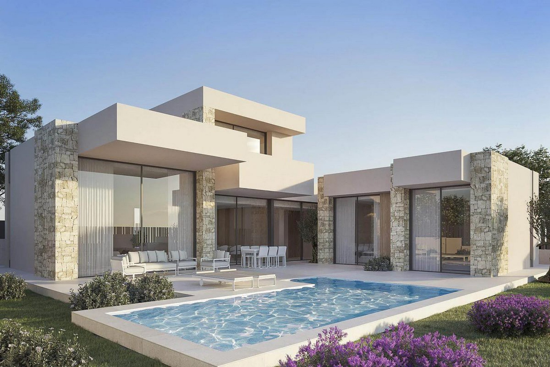 Ontdek deze exclusieve moderne villa's in Dénia, ontworpen om comfort, stijl en functionaliteit te bieden op een bevoorrechte locatie. Met hun moderne architectuur, elegante natuurstenen details en grote ramen baden deze huizen in natuurlijk licht, waardoor lichte en uitnodigende ruimtes ontstaan. De privétuin en het zwembad vormen de perfecte omgeving om het hele jaar door te genieten van de mediterrane levensstijl.