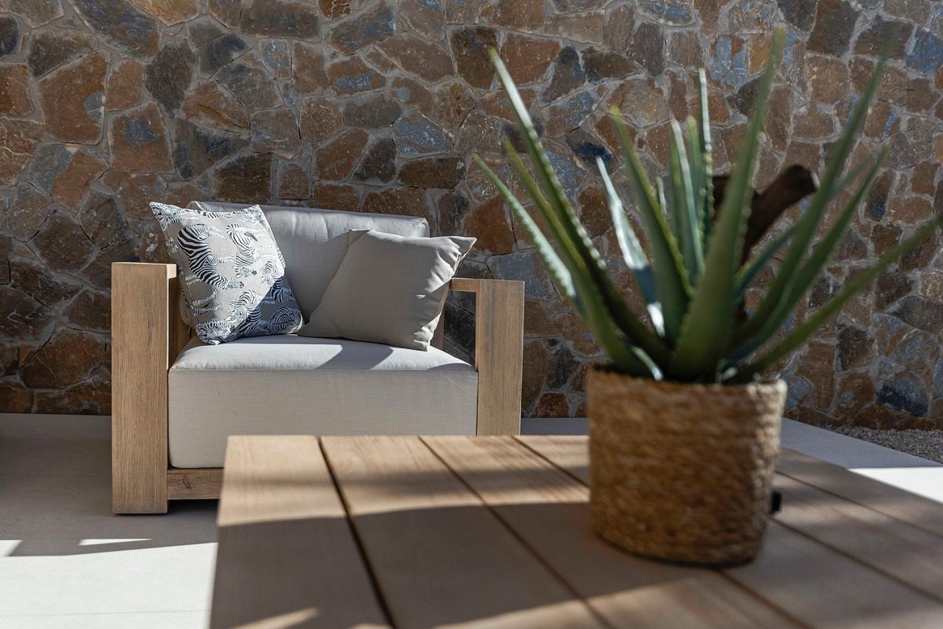 De acht villa’s Larus ademen een mediterrane Ibiza-sfeer, met een vernieuwd ontwerp dat moderne elegantie combineert met warme, natuurlijke materialen uit de regio. Verwacht lichte, open ruimtes die naadloos overlopen in royale tuinen, uitnodigende terrassen en een privézwembad – jouw persoonlijke stukje paradijs.