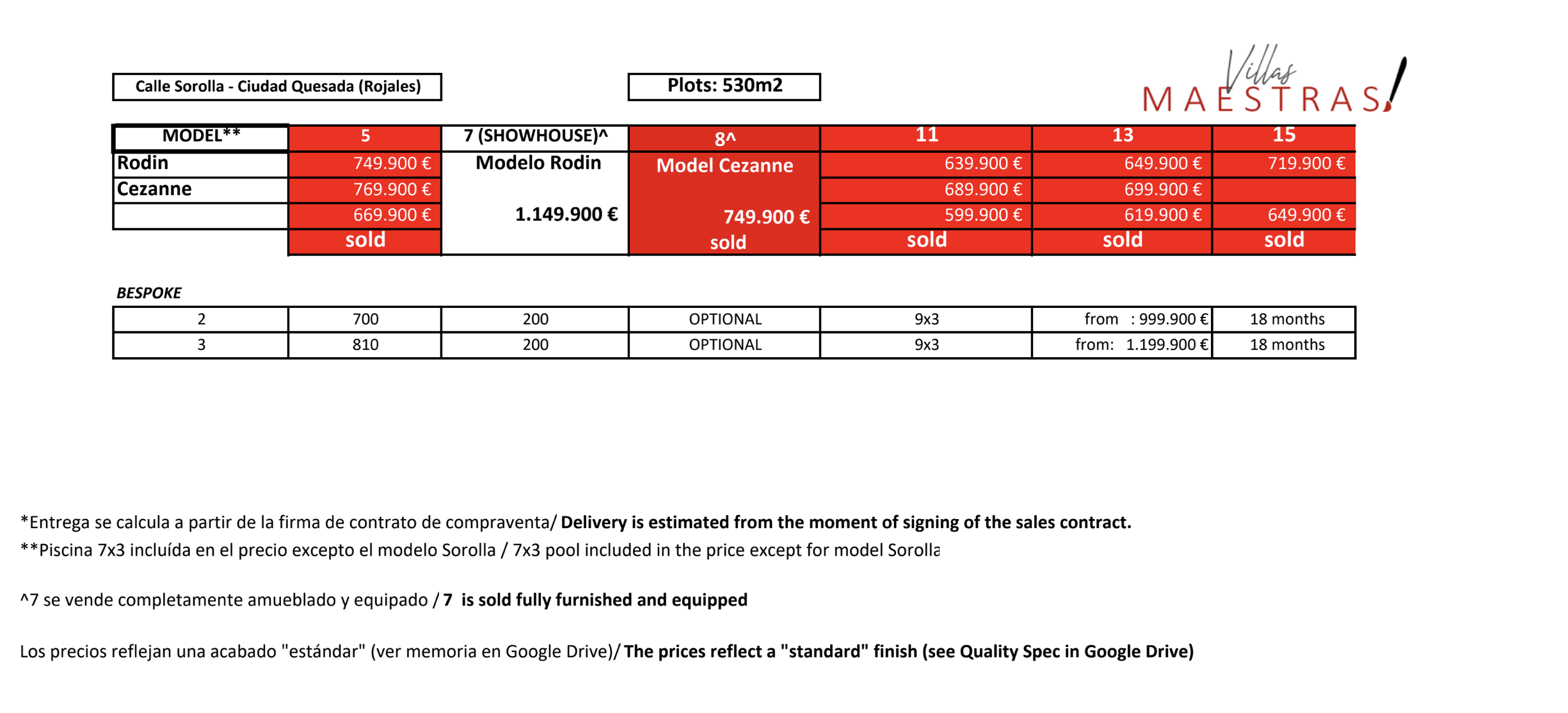 In opdracht van de projectontwikkelaar bieden wij met trots het project Villa Maestras aan. Zie je ergens een lagere prijs? Dan is de kans groot dat die collega-makelaar zijn prijzen nog niet heeft bijgewerkt.
